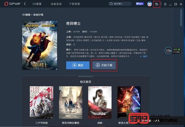 PC VR通過(guò)和電腦連接,設(shè)備同樣能夠和網(wǎng)絡(luò)上的海量資源掛鉤。實(shí)際上,大朋DPVR E3這款產(chǎn)品做到了只需在Surface開機(jī)后,玩家只需簡(jiǎn)單的打開叫“大朋助手”的軟件,就可以觀看海量視頻。大朋(DPVR)E3頭顯也支持本地視頻播放,這意味著玩家可以自行搜索VR影視資源,下載到本地后通過(guò)VR觀看。