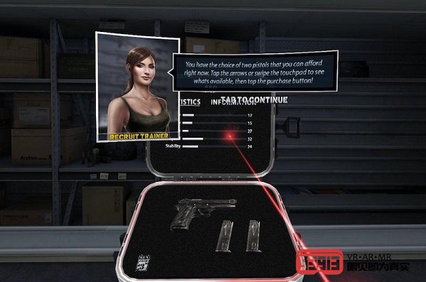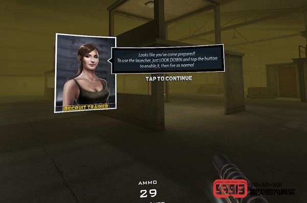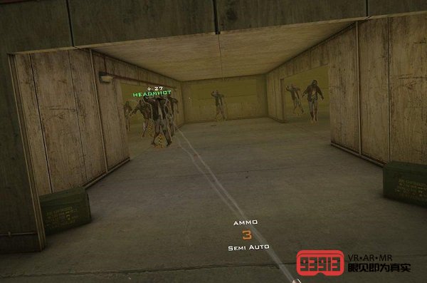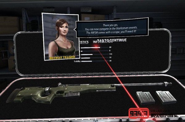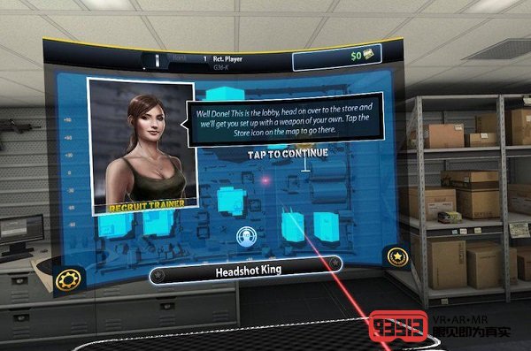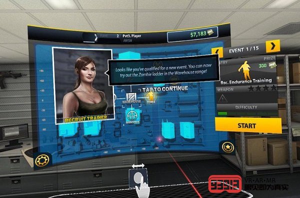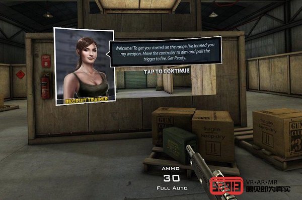游戲一開始,我來到了一個(gè)類似靶場(chǎng)的地方,這里就是本作的訓(xùn)練關(guān)卡。一位美女向我介紹了游戲的基本操作:用手柄瞄準(zhǔn)前方出現(xiàn)的靶子,然后按扳機(jī)鍵射擊,而在當(dāng)前子彈打完之后,按觸摸板左側(cè)進(jìn)行裝彈,系統(tǒng)會(huì)出現(xiàn)一個(gè)指針和光標(biāo),當(dāng)指針和光標(biāo)重合時(shí)按下扳機(jī)鍵可以實(shí)現(xiàn)最佳裝彈(速度最快),如果錯(cuò)過則會(huì)減慢裝彈速度,基本的操作非常簡(jiǎn)單。