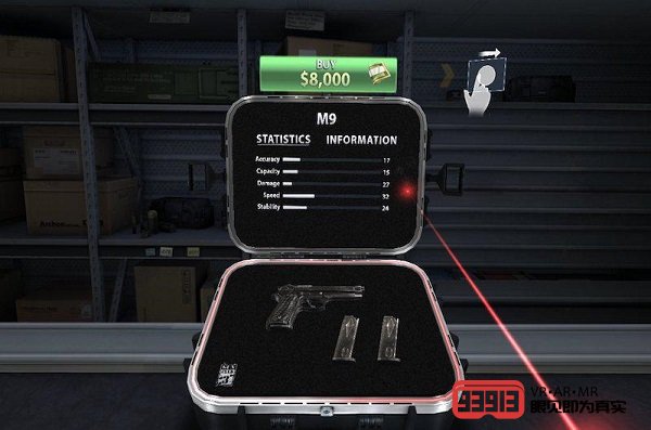 在槍械商店里玩家可以買到各種類型的槍械(手槍、沖鋒槍、霰彈槍、步槍和狙擊槍),不過最開始我還是從手槍開始吧。在美女的提示下,我花8000美元買了一把型號(hào)為“M9”的手槍(看起來很強(qiáng)力)。