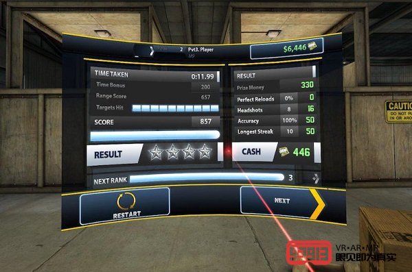 隨著游戲的深入,我又解鎖了更多模式,比如利用狙擊槍進(jìn)行射擊的“MARKSMAN(狙擊手)”模式。這里就需要按下觸摸板的上側(cè)將狙擊槍的瞄準(zhǔn)鏡置于眼前才能瞄準(zhǔn)遠(yuǎn)處的敵人,關(guān)于狙擊槍我到現(xiàn)在還用得不好,看來之后還需要多加練習(xí)才行。