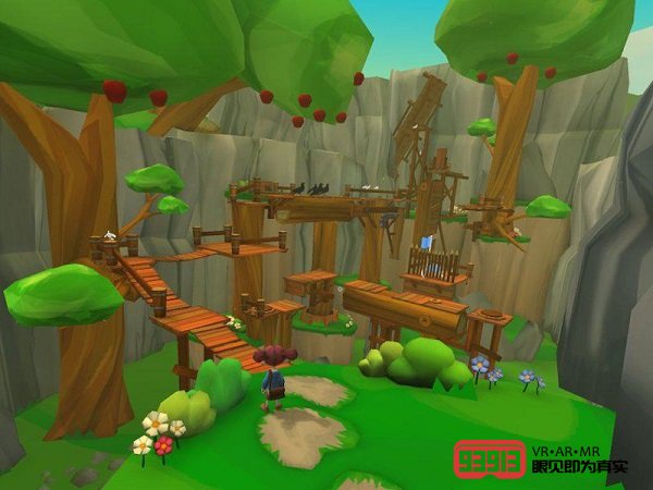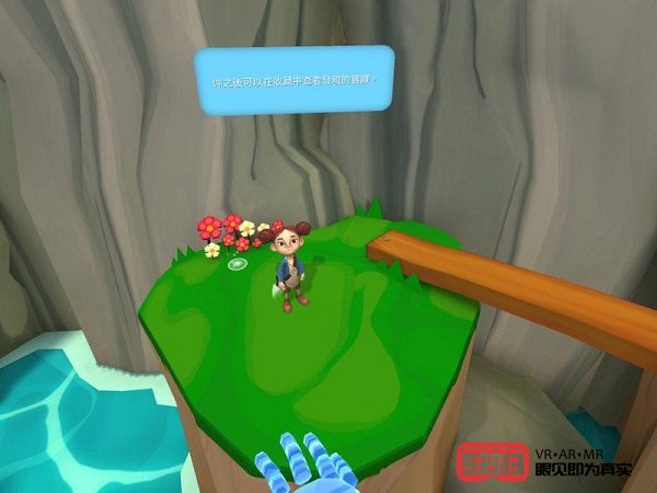 在游戲的最初階段,系統(tǒng)會給予玩家足夠且清晰的提示,幫助玩家快速熟悉操作。本作是一款少見的第三人稱VR游戲,雖然游戲的主角是小孩,但玩家實際控制的應(yīng)該是一個類似天神的角色,他一方面能夠指引主角前進(jìn)的方向,另一方面還能操作關(guān)卡中的各種機(jī)關(guān)道具,幫助主角一路披荊斬棘,最終找到心愛的狗子。