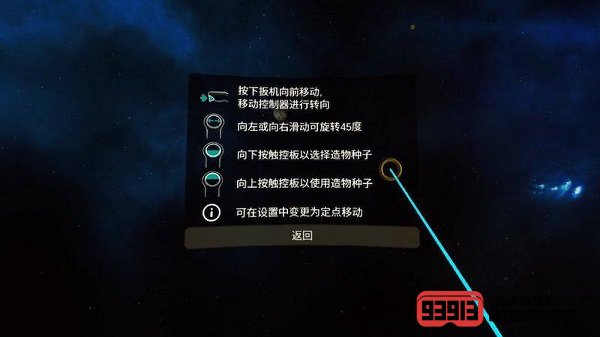 以第一個場景“起源”為例,剛進(jìn)入這個場景,我發(fā)現(xiàn)自己處在一片浩瀚的星空之中。除了遠(yuǎn)方的點點星光和星云,在我的面前的還有一顆類似太陽的恒星與幾顆行星。此時滑動手柄上的觸摸板,可以選擇不同的物體加入到當(dāng)前的場景之中,當(dāng)我選擇了一顆恒星并發(fā)射(對,是發(fā)射)出去,我發(fā)現(xiàn)新加入的恒星就取代了之前的那顆,看來這是一個類似太陽系的系統(tǒng),因此只能存在一顆恒星。