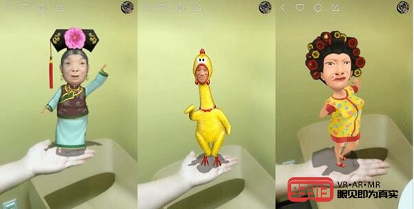 除此之外,快手AR尬臉舞這套魔法表情可以實現(xiàn)給每個AR卡通形象 換臉 ,從手機相冊選取任意一張有人臉形象的照片,可以把照片中的臉部形象換到AR生成的卡通形象上。