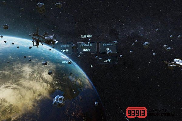 和我之前玩過的一些非VR空戰(zhàn)模擬游戲一樣,本作的主要戰(zhàn)斗方式就是用戰(zhàn)機的準星找到敵人并鎖定,然后發(fā)射導彈,或者在近距離遇敵時用機炮射擊。經(jīng)過一番激戰(zhàn),我成功完成了教程任務,系統(tǒng)在任務完成后會顯示相關的信息,玩家可以選擇重玩任務或返回主頁面。