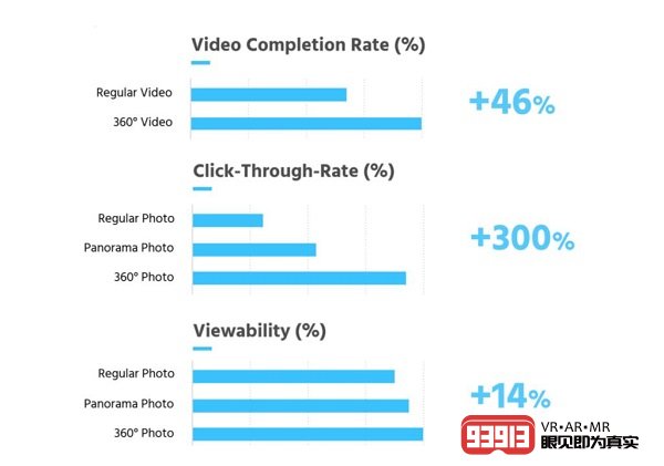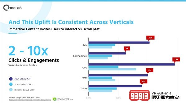 性能的提升在所有行業(yè)和用例中都是一致的。在所有行業(yè)中,與其通常運(yùn)行的2D廣告相比,同一客戶和廣告系列的沉浸式廣告將獲得更高的性能。Universal Pictures,Travel Nevada,Clorox,Cathay Pacific,Home Depot和Disney Broadway等客戶都推出了多個VR廣告活動。