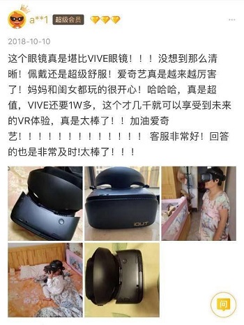 雙十一矚目的戰(zhàn)績展示了愛奇藝的市場認可度,而消費者真實使用后的反饋更是體現(xiàn)出了其VR產品強大的“用戶緣”。愛奇藝奇遇VR在天貓、京東等電商平臺評論已近萬條,好評率達到了業(yè)內頂級的98%。