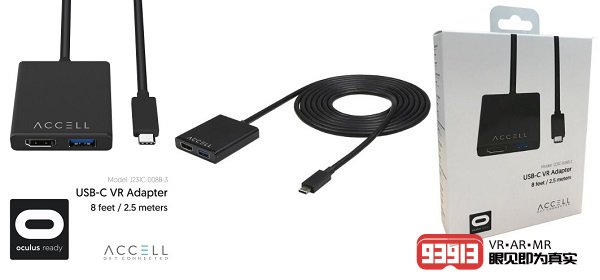 一種名為VirtualLink的新VR標(biāo)準(zhǔn)旨在通過單根USB-C線將下一代VR頭顯連接到PC。Accell的VR適配器兼容Oculus Rift和WindowsMR頭顯。Accell注意到適配器使用USB-C的標(biāo)準(zhǔn)DisplayPort Alt模式而不是VirtualLink,VirtualLink是具有不同數(shù)據(jù)通道配置的單獨(dú)Alt模式。 除了簡化與PC的連接之外,Accell VR適配器還具有額外的8英尺電纜,與默認(rèn)系繩(長度約為13英尺)相比具有更長的延伸。