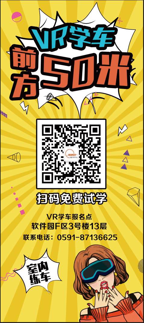 為滿足廣大學車考駕照者的需求,1月25日起在福州軟件園F區(qū)3號樓13層廈門游仁舉辦VR學車體驗活動,掃碼免費試學,前期報名學車更有大優(yōu)惠哦。