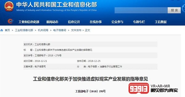 2018年12月,工信部正式發(fā)布《加快推進(jìn)VR產(chǎn)業(yè)發(fā)展的指導(dǎo)意見(jiàn)》(以下簡(jiǎn)《指導(dǎo)意見(jiàn)》),這是一件很有意義的事情,對(duì)國(guó)家加快VR發(fā)展。