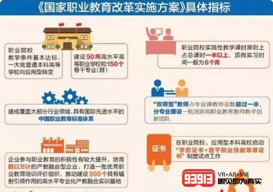 《方案》提出,從2019年開始,在職業(yè)院校、應(yīng)用型本科高校啟動(dòng)“學(xué)歷證書+若干職業(yè)技能等級(jí)證書”制度試點(diǎn)工作。到2022年,職業(yè)院校教學(xué)條件基本達(dá)標(biāo),一大批普通本科高等學(xué)校向應(yīng)用型轉(zhuǎn)變。經(jīng)過5-10年左右時(shí)間,職業(yè)教育基本完成由政府舉辦為主向政府統(tǒng)籌管理、社會(huì)多元辦學(xué)的格局轉(zhuǎn)變,由追求規(guī)模擴(kuò)張向提高質(zhì)量轉(zhuǎn)變,由參照普通教育辦學(xué)模式向企業(yè)社會(huì)參與、專業(yè)特色鮮明的類型教育轉(zhuǎn)變,大幅提升新時(shí)代職業(yè)教育現(xiàn)代化水平,為促進(jìn)經(jīng)濟(jì)社會(huì)發(fā)展和提高國家競爭力提供優(yōu)質(zhì)人才資源支撐。