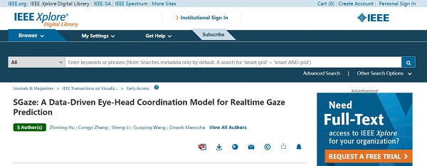 近日,北京大學(xué)及美國(guó)馬里蘭大學(xué)的學(xué)者在期刊IEEE Transactions on Visualization and Computer Graphics上發(fā)表了題目為SGaze: A Data-Driven Eye-Head Coordination Model for Realtime Gaze Prediction的學(xué)術(shù)論文。在研究過程中運(yùn)用眼球追蹤的相關(guān)理論,并采用了七鑫易維VR眼動(dòng)分析系統(tǒng)采集用戶注視點(diǎn)信息。