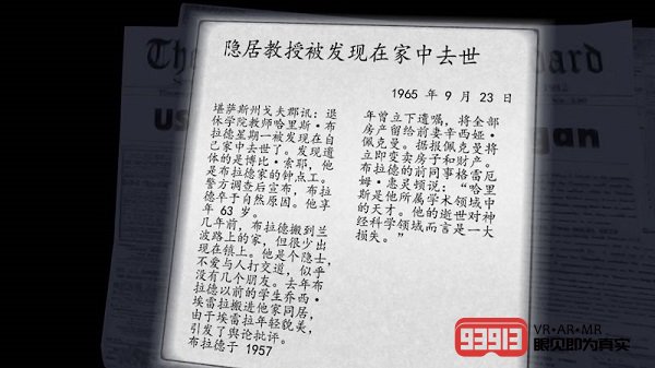 返回游戲初始菜單,我發(fā)現(xiàn)本作一共有5個結(jié)局,而我剛剛解鎖了最差的那個。寫到這里,這次的初體驗也告一段落,在這里我依舊做個小總結(jié):作為一款VR解謎游戲,《絕密緝兇》具有出色的游戲畫面、完整的交互系統(tǒng)以及相對豐富的劇情,點擊移動的操作方式非常適合VR一體機這樣的設(shè)備,游戲?qū)τ诃h(huán)境氛圍的把握以及一些橋段的設(shè)計(比如剛才的陌生人追殺)都帶給玩家一種強烈的危機感,其綜合表現(xiàn)實屬上乘,甚至不亞于某些PCVR游戲。在這里推薦給喜歡玩解謎和恐怖游戲的玩家,究竟教授死于誰手,而我們的主角妹子又將迎來什么樣的結(jié)局(不止一個),就讓我們在《絕密緝兇》中繼續(xù)探索吧。
