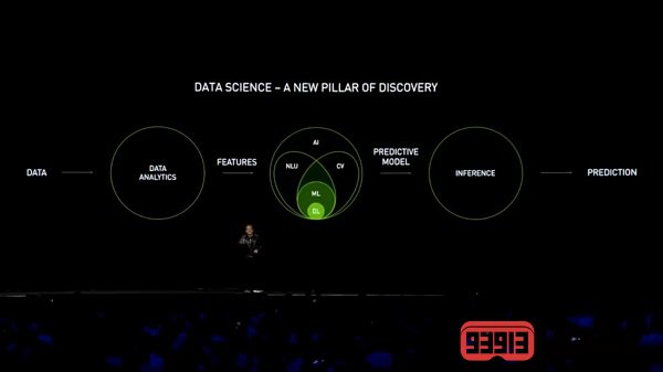 黃仁勛還提到,數(shù)據(jù)驅(qū)動的數(shù)據(jù)科學(xué)研究法在計(jì)算機(jī)領(lǐng)域發(fā)展迅速,已經(jīng)成為科學(xué)研究方法第四大支柱。他強(qiáng)調(diào)了應(yīng)用數(shù)據(jù)科學(xué)研究法的三大要素:第一是龐大的數(shù)據(jù)采集量;第二是機(jī)器學(xué)習(xí)和深度學(xué)習(xí)算法的優(yōu)化;第三是計(jì)算能力。