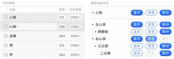 Nibiru XRViewer 針對顯示后的模型還提供交互功能。自動分析模型文件并生成對應(yīng)的模型層次結(jié)構(gòu)。用戶可以自定義節(jié)點(diǎn)的名稱信息、交互邏輯、顯示、交互支持、拆分等諸多細(xì)節(jié)。