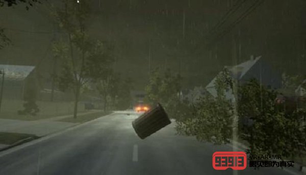 為了讓體驗變得更加真實、生動,體驗過臺風(fēng)內(nèi)容的人會發(fā)現(xiàn)一個有趣的小細(xì)節(jié),在超強(qiáng)臺風(fēng)的作用下,原本干凈整齊的街道上,樹木被連根拔起,低矮的屋頂被掀走,突然間,一個原本不起眼的垃圾桶以極快的速度向體驗者沖過來,大大加深了體驗者對超強(qiáng)臺風(fēng)破壞力的認(rèn)知。