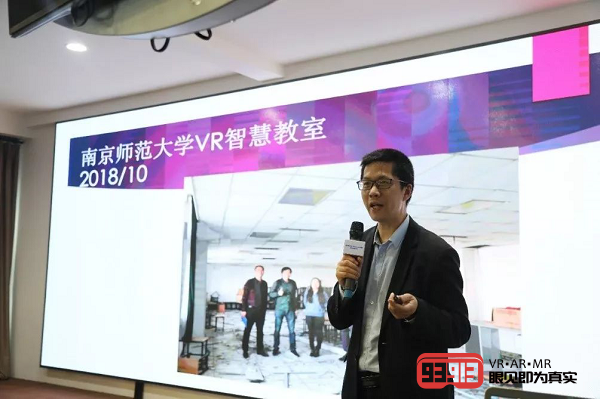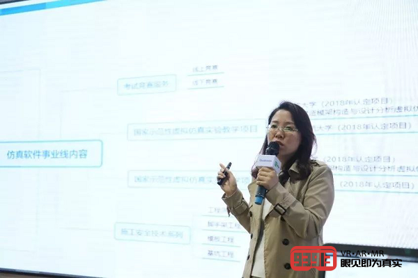 萬霆科技事業(yè)部總監(jiān)尹春桃以《虛擬技術(shù)在建筑教育中的應用》為主題,為在場嘉賓呈現(xiàn)了一場精彩的分享。首先向在場嘉賓簡要介紹了萬霆在建筑教育領域近幾年作出的杰出成果。講述了萬霆利用Nibiru AR/VR等全新科技對于建筑教育領域的改革與創(chuàng)新。