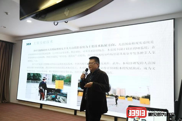 南京水晶石董事長韓峰向在場嘉賓介紹了《南京未來視界虛擬(增強)現(xiàn)實產(chǎn)業(yè)技術(shù)研究院》。韓峰從研究院基本概況、主營業(yè)務、企業(yè)優(yōu)勢、具體工作四個方面與在場嘉賓分享了未來視界虛擬(增強)現(xiàn)實產(chǎn)業(yè)技術(shù)研究院的相關情況。
