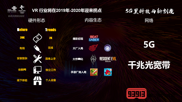 2019年和2020年將是VR行業(yè)厚積薄發(fā)的兩年。從硬件形態(tài)上看,VR逐漸擺脫了高價的標(biāo)簽、線材的束縛、復(fù)雜的安裝流程、PC主機(jī)的限制,從高冷的專業(yè)設(shè)備向消費(fèi)級產(chǎn)品演變。從內(nèi)容層面來看,短流程、Demo級的內(nèi)容逐漸減少,有Beat Saber爆款初現(xiàn)、有網(wǎng)易、育碧等內(nèi)容大廠入局,有生化危機(jī)、上古卷軸等傳統(tǒng)大作VR化,也有水果忍者、憤怒的小鳥等國民級手游涉足VR,內(nèi)容的短板已逐漸被填補(bǔ)。從網(wǎng)絡(luò)層面看,在5G和千兆光寬帶的加持下,在云端服務(wù)器上運(yùn)行的VR游戲?qū)⒉辉傩枨髲?qiáng)悍的電腦硬件,無疑會進(jìn)一步降低VR的準(zhǔn)入門檻。