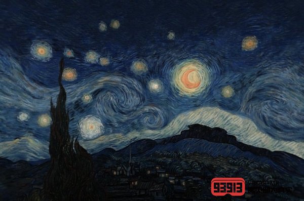 《星空》:作者文森特·梵高,創(chuàng)作時間約1889年,梵高的標志性作品,原畫現(xiàn)存于紐約現(xiàn)代藝術(shù)博物館;