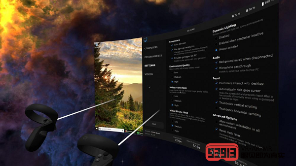然而,與之前的移動(dòng)版本不同,由于Oculus Quest能夠在3D空間中跟蹤頭部動(dòng)作,因此Virtual Desktop for Quest無(wú)疑是一種更舒適的體驗(yàn)。擁有更多1:1的虛擬到物理的體驗(yàn)會(huì)讓用戶瀏覽到更多內(nèi)容,瀏覽網(wǎng)頁(yè),甚至長(zhǎng)時(shí)間玩PC游戲。Virtual Desktop for Quest應(yīng)用程序依靠WiFi流來(lái)建立與主機(jī)的連接。通過(guò)Quest的手動(dòng)瞳孔調(diào)節(jié)器您可以調(diào)節(jié)眼睛與頭顯的最佳距離,以獲得最佳的觀看體驗(yàn)。