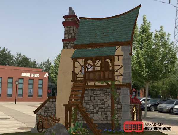 在筆者的面前,利用iPad Pro后置攝像頭實時拍攝的小廣場實景中,一棟仿佛來自童話故事的小樓拔地而起,完美地覆蓋了一座原本平淡無奇的變電箱——最引人矚目的是,這絕不僅僅是什么“疊加在實拍畫面上的貼圖”那么無聊的把戲:筆者試著邁開步子,左轉(zhuǎn)右轉(zhuǎn)、前前后后,看了幾圈,不同的角度位置上,這棟憑空出現(xiàn)的AR小樓所呈現(xiàn)出的3D透視關系,皆是無懈可擊。