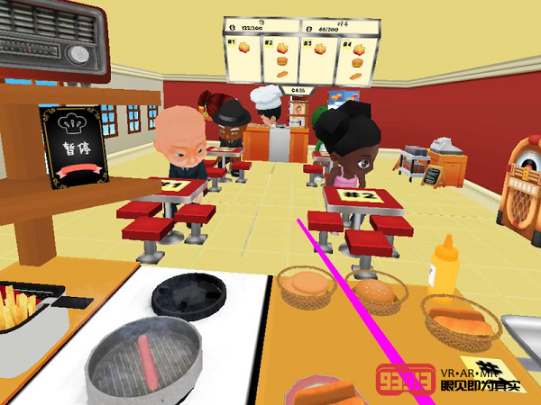 最后,在簡單體驗之后,我想給出自己對于《烹飪游戲》這款游戲的評價。這款游戲非常適合原本就喜歡玩經(jīng)營模擬類游戲的朋友,同時其實際操作難度要比傳統(tǒng)PC、主機或手機上的同類游戲大很多。其原因也很簡單:在VR游戲中,玩家的肢體操作要比鼠標或手柄豐富得多,即使只是簡單的做個漢堡,我都感覺非常復雜。因此,對于只喜歡簡單射擊、動作游戲體驗的玩家來說,《烹飪游戲》或許并不是一個好選擇。當然,作為一款小品級的VR休閑游戲,《烹飪游戲》的表現(xiàn)還是不錯的,尤其非常適合那些喜歡做飯的玩家,感興趣的朋友不妨一試。