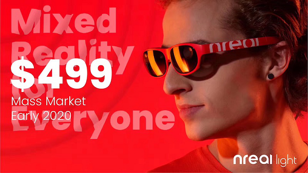 北京時間2019年5月31日,主打“要讓混合現(xiàn)實變成人人可以消費的產(chǎn)品”nreal在AWE USA 2019同時發(fā)布了公司首款產(chǎn)品nreal light的消費者及開發(fā)者兩個版本,其中消費者版本售價499美元,開發(fā)者版本售價1199美元。