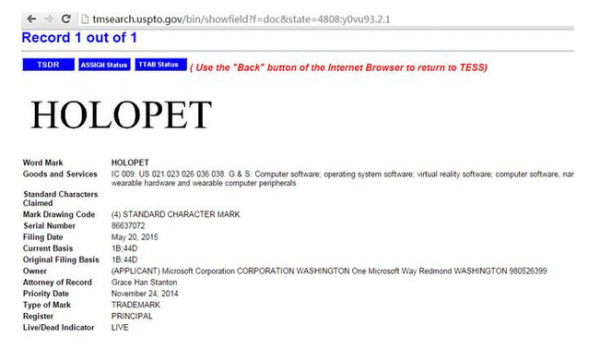 早前,微軟介紹HoloLens全息頭盔的時候,整個科技圈都“瘋了”,尤其是那些極客們。據(jù)悉,近日,微軟正在申請名為“HoloPet(全息寵物)”商標,雖然文件中沒有提及HoloLens,但是我們可以看出,這個商標的用意如同其名“全息寵物”。