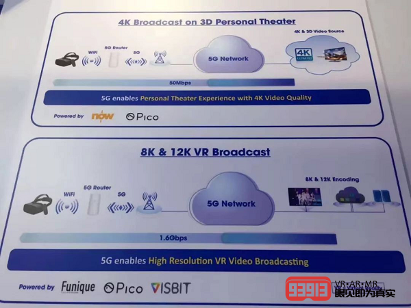 在Immersive 360沉浸視頻展區(qū),Visbit 搭配Pico G2 4K一體機頭顯,為觀眾演示了5G環(huán)境下12K VR視頻播放的超高清體驗。