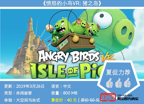 如果你是一名《憤怒的小鳥》系列資深玩家,體驗過各式各樣的版本的話。那么這款VR版則會帶你回到最初的上手體驗時,所收獲的那份感動與回憶。在《憤怒的小鳥VR:豬之島》游戲里,沒有任何氪金道具等影響游戲平衡的東西,只有通過技術與運氣才能獲得滿星通關。