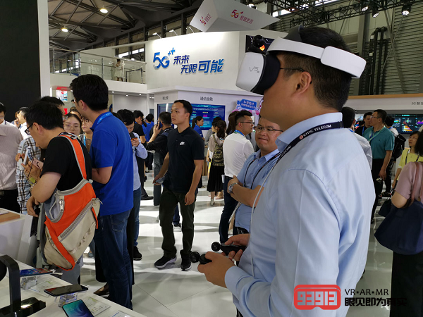 本次MWC所有展館都由三大運(yùn)營(yíng)商提供實(shí)時(shí)5G網(wǎng)絡(luò)覆蓋,而運(yùn)營(yíng)商的自有展臺(tái)上,自然也都推出了多種基于5G網(wǎng)絡(luò)的演示及活動(dòng)。在N3館中國(guó)移動(dòng)“自主品牌智能硬件”展區(qū)的中央位置,擺放的是一套6DoF 5G云VR套裝,它由中國(guó)首個(gè)獲得5G設(shè)備進(jìn)網(wǎng)許可證的手機(jī) – 華為Mate 20 X 5G版,搭配華為VR2頭顯以及NOLO CV1定位交互設(shè)備組成,現(xiàn)場(chǎng)即可體驗(yàn)基于5G移動(dòng)網(wǎng)絡(luò)的云VR游戲,對(duì)觀展的年輕極客們展現(xiàn)出十足的吸引力。當(dāng)然,包括中國(guó)移動(dòng)終端公司總經(jīng)理欒曉維在內(nèi)的多位公司高層也參與了現(xiàn)場(chǎng)體驗(yàn),人氣十足。
