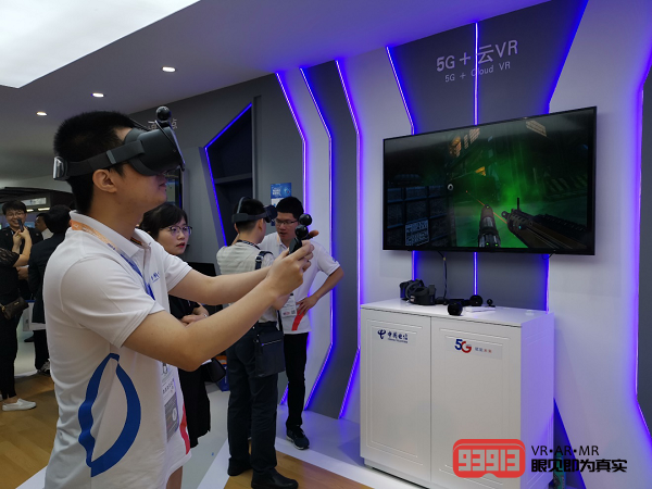 5G云VR,是基于5G超大速率超低時(shí)延的特性,利用云端智能處理復(fù)雜的計(jì)算及渲染功能,完成的一套VR解決方案。以中國(guó)移動(dòng)展臺(tái)為例,其現(xiàn)場(chǎng)展示的內(nèi)容,是將云端服務(wù)器渲染的高清VR游戲畫(huà)面通過(guò)5G移動(dòng)網(wǎng)絡(luò)傳輸?shù)酱钶d了5G Sim卡的Mate 20 X手機(jī)上,以華為VR2頭顯作為顯示終端,NOLO CV1作為6DoF交互終端,最終完成了一整套5G云VR方案。其不僅保持著移動(dòng)端VR設(shè)備的輕便和易用性,兼顧了PC端的高質(zhì)量?jī)?nèi)容及沉浸交互體驗(yàn),更能在任何有5G信號(hào)的地方輕松實(shí)現(xiàn)云VR玩法,讓VR的使用場(chǎng)景不再局限。