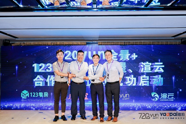 720云與小紅屋、渲云、123看房達(dá)成相應(yīng)領(lǐng)域合作,720云CEO段俊康先生(右二)、小紅屋副總經(jīng)理、聯(lián)合創(chuàng)始人程亮先生(左二)、123看房市場(chǎng)總監(jiān)劉航先生(左一)、渲云總經(jīng)理金偉先生(右一)上臺(tái)簽約,為未來進(jìn)一步合作奠定基礎(chǔ)。