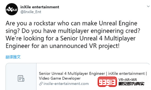 這家工作室今天通過(guò)Twitter發(fā)文稱:“你是一位可以令Unreal引擎唱歌的搖滾明星嗎?你曾涉足過(guò)多人游戲的開(kāi)發(fā)嗎? 我們正在為一個(gè)未宣布的VR項(xiàng)目尋找一位高級(jí)Unreal 4多人游戲開(kāi)發(fā)工程師。”