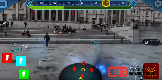 位于倫敦的Scape公司開發(fā)了一款大型AR射擊游戲,每個玩家都有自己的無人機跟隨他們,你可以看到其他人的炮塔和盾牌。