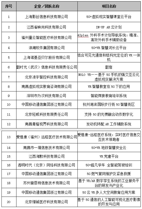 附:《第二屆“綻放杯”5G應(yīng)用征集大賽紅谷VR專題賽決賽入圍名單》