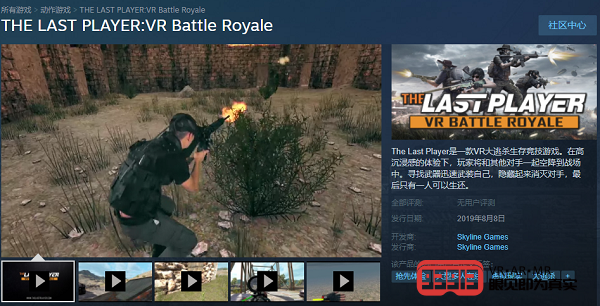 基于對時下熱門的戰(zhàn)術(shù)競技網(wǎng)游的創(chuàng)新之舉,《絕命戰(zhàn)場VR》在公布信息后便迅速收到全球范圍的矚目。在2019美國E3中,《絕命戰(zhàn)場VR》成為當時最火的VR游戲之一,熱度一度超越了傳統(tǒng)大廠的新游;甚至在全球最大的游戲發(fā)行平臺之一的Steam上,《絕命戰(zhàn)場VR》也被列為E3推介游戲之一,也是唯一被Steam推介的國產(chǎn)VR游戲。