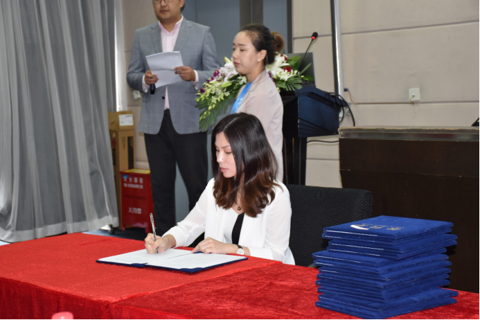 廣州多益網(wǎng)絡(luò)股份有限公司副總裁王如潔(左一)與反盜版工委副主委張金暉(右一)簽署反盜維權(quán)委托合作協(xié)議