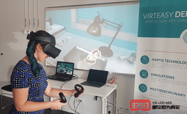Virteasy Dental使用帶有觸覺臂和牙科手柄的3D高清屏幕支持學(xué)生處理CGI角色以提高技能。通過這筆資金,Virteasy Dental將繼續(xù)開發(fā)VR原型,該原型已與觸覺設(shè)備結(jié)合以模擬牙科鉆孔。