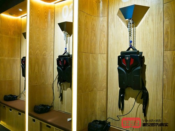 在每個(gè)游幕門店,體驗(yàn)者首先來(lái)到準(zhǔn)備區(qū),在這里,你將在引導(dǎo)員的帶領(lǐng)下,戴好科幻感十足的 VR 頭顯和背心式裝備,完成一系列儀式性的準(zhǔn)備,在推門的那一刻,只需一秒,無(wú)縫銜接到故事世界。