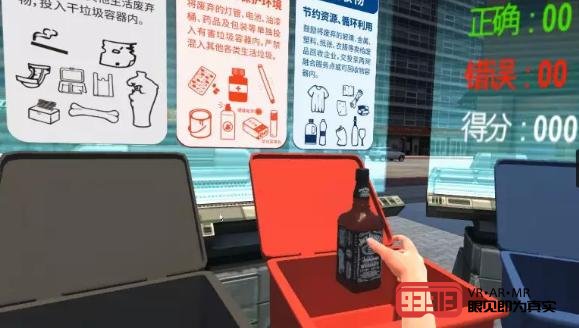 “操作簡單,輕松上手”是這款自助VR垃圾分類體驗平臺最大的特點(diǎn)。進(jìn)入VR后,體驗者面前自動出現(xiàn)四個分類垃圾桶,根據(jù)系統(tǒng)隨機(jī)出現(xiàn)的垃圾,操作者在規(guī)定的時間內(nèi)把它們正確地分類到指定的垃圾桶即可。