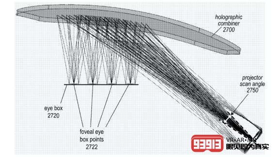 新的專利申請(qǐng)證實(shí),發(fā)射激光器陣列的投影儀將使用多個(gè)光波導(dǎo),鏡子,全息透鏡和全息組合器來(lái)創(chuàng)建3D增強(qiáng)圖像??偣舶伺_(tái)投影儀可用于重疊四個(gè)聚焦的中央凹和四個(gè)更遠(yuǎn)的外圍圖像,從而產(chǎn)生更大的深度。