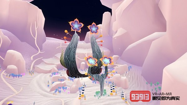 如果你并沒(méi)有看懂以上的官方說(shuō)明,那么就讓我向你細(xì)細(xì)道來(lái)吧。本作基本上是一款輕度互動(dòng)及解謎的VR游戲,而初到本作的世界,對(duì)佛學(xué)一向感興趣的我馬上就產(chǎn)生了一種強(qiáng)烈的“佛系”感。無(wú)論是清新的配色、舒緩的配樂(lè),還是隨處可見的荷葉與蓮花,本作可謂佛性十足??吹贸鰜?lái),制作團(tuán)隊(duì)在創(chuàng)作過(guò)程中肯定參考了不少佛學(xué)、靈修以及瑜伽的因素,這也使得玩家在游玩過(guò)程中絕對(duì)會(huì)處于一種放松的狀態(tài),不用琢磨游戲的目標(biāo)和關(guān)卡到底是怎樣的,只需用心感受周遭的氛圍,自然會(huì)拈花一笑。一花一世界,本作通過(guò)極具佛學(xué)元素的美術(shù)風(fēng)格,為玩家打造了一個(gè)“極樂(lè)凈土”,善哉善哉!