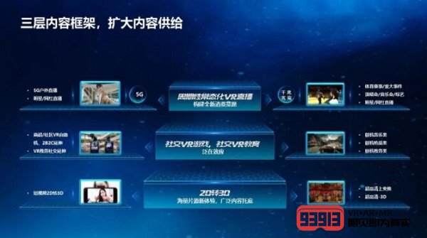 華為結(jié)合對VR用戶的理解和實際部署經(jīng)驗,提出VR “三層框架”以擴(kuò)大內(nèi)容供給:1)2D轉(zhuǎn)3D,為VR產(chǎn)品做海量內(nèi)容托底;2)增加社交屬性,讓VR游戲、VR教育等應(yīng)用聯(lián)機(jī)變現(xiàn);3)開展常態(tài)化VR直播,吸引新用戶、促進(jìn)活躍度。