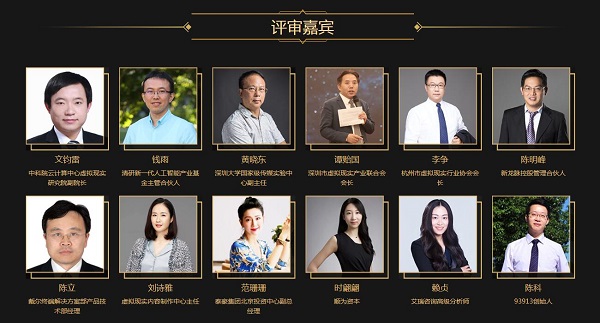 2020虛擬與增強現(xiàn)實產(chǎn)業(yè)金V獎評委分別為中科院云計算中心虛擬現(xiàn)實研究院副院長文鈞雷、清研新一代人工智能產(chǎn)業(yè)基金主管合伙人錢雨、深圳大學(xué)國家級傳媒實驗中心副主任黃曉東、深圳市虛擬現(xiàn)實產(chǎn)業(yè)聯(lián)合會會長譚貽國、杭州市虛擬現(xiàn)實行業(yè)協(xié)會會長李爭、新龍脈控股管理合伙人陳明峰、戴爾終端解決方案部產(chǎn)品技術(shù)部經(jīng)理陳立、虛擬現(xiàn)實內(nèi)容制作中心主任劉詩雅、泰豪集團(tuán)北京投資中心副總經(jīng)理范珊珊、順為資本時翩翩、艾瑞咨詢高級分析師賴貞、93913創(chuàng)始人陳科。以上評委皆是當(dāng)前XR行業(yè)一線權(quán)威專家和資深觀察者,對行業(yè)走向和產(chǎn)品有著精準(zhǔn)的判斷和理解。