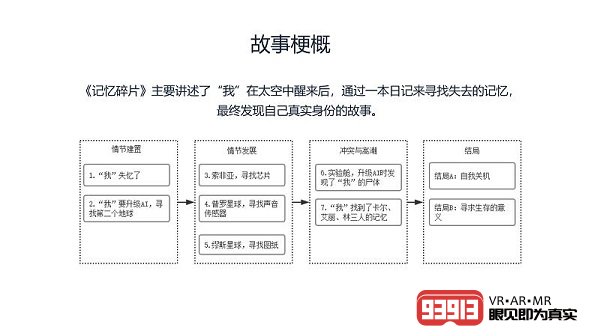 如果說《記憶碎片》的劇情很有趣,那么這部作品在藝術(shù)和技術(shù)方面的表現(xiàn)就稱得上是驚艷了,特別是在“在校學(xué)生作品”這個前提下。首先,作品的完整性和完成度很高,敘事、場景、交互、美術(shù)等諸多方面都表現(xiàn)出一種成熟感;其次,從藝術(shù)性而言,作品的美術(shù)風(fēng)格呈現(xiàn)出一種“科幻的質(zhì)感”,多個場景的建模制作精良,一些小的細(xì)節(jié)(比如配音、交互UI)均令人滿意;最后,從技術(shù)性來說,一些場景及交互的呈現(xiàn)效果非常出色,比如某個場景中的星球模型可以隨著外部環(huán)境(通過攝像頭識別)實(shí)現(xiàn)鏡面反射的效果,相信制作者如果沒有一定的技術(shù)基礎(chǔ)是很難做到這種程度的,這點(diǎn)給我留下了極深的印象。