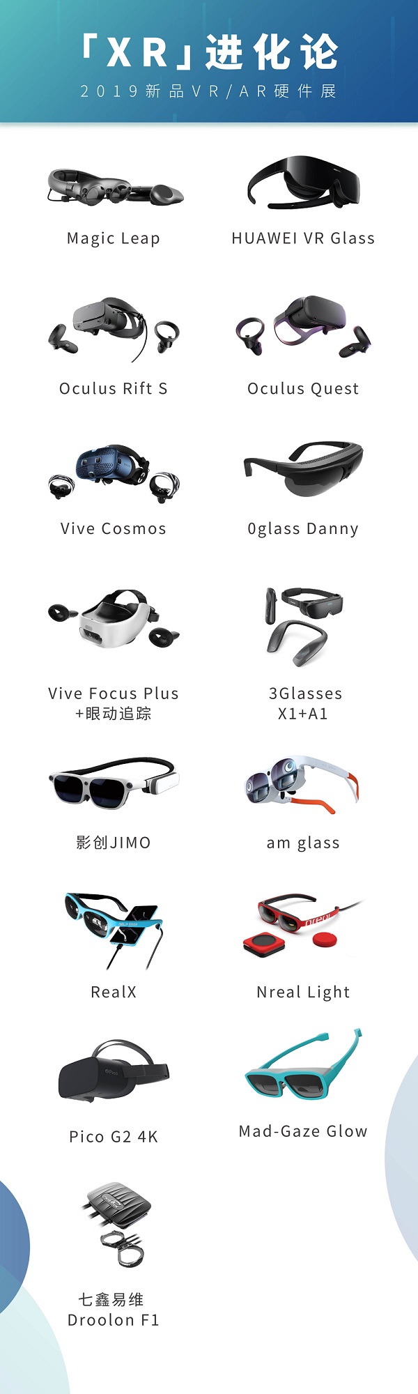 除了重磅嘉賓的干貨分享之外,現(xiàn)場的“XR進(jìn)化論 · 2019新品VR/AR硬件展”也是不可錯(cuò)過的亮點(diǎn)之一。 該展臺梳理了2014年-2019年的VR/AR發(fā)展路徑,5年的浮浮沉沉,用一條簡單的時(shí)間線概括出來,希望讓更多的人了解——XR一直在進(jìn)化。而硬件終端作為技術(shù)最直觀的載體,透露著產(chǎn)業(yè)發(fā)展的重要訊息,現(xiàn)場將展示2019年上市的15款極具代表性的VR/AR新品硬件體驗(yàn),呈現(xiàn)出2019年技術(shù)所處的發(fā)展階段,思考未來發(fā)展趨勢。