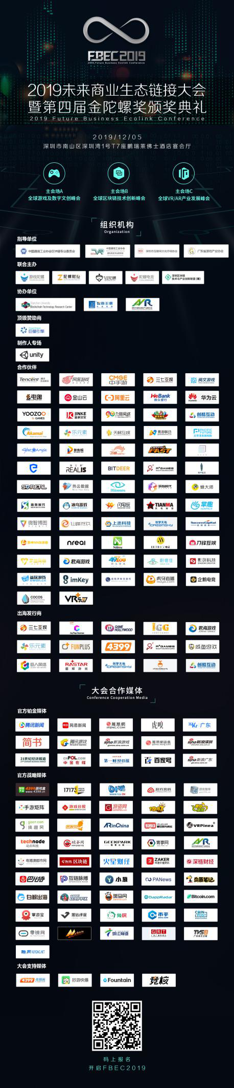 2019年12月5日,由中國(guó)通信工業(yè)協(xié)會(huì)區(qū)塊鏈專(zhuān)業(yè)委員會(huì)、中國(guó)通信工業(yè)協(xié)會(huì)虛擬現(xiàn)實(shí)專(zhuān)業(yè)委員會(huì)、廣東省游戲產(chǎn)業(yè)協(xié)會(huì)、深圳市互聯(lián)網(wǎng)文化市場(chǎng)協(xié)會(huì)指導(dǎo),行業(yè)頭部媒體游戲陀螺、VR陀螺、陀螺電競(jìng)、陀螺財(cái)經(jīng)、深圳區(qū)塊鏈技術(shù)與產(chǎn)業(yè)創(chuàng)新聯(lián)盟聯(lián)合主辦的2019未來(lái)商業(yè)生態(tài)鏈接大會(huì)暨第四屆金陀螺獎(jiǎng)?lì)C獎(jiǎng)典禮(簡(jiǎn)稱(chēng)“FBEC2019”)在深圳市南山區(qū)深圳灣1號(hào)T7座鵬瑞萊佛士酒店宴會(huì)廳盛大開(kāi)幕。