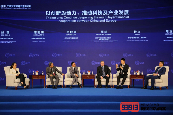 影創(chuàng)科技董事長孫立與空客中國區(qū)董事長陳菊明等嘉賓在2019中歐企業(yè)家峰會青島論壇上共商科技創(chuàng)新改革路徑