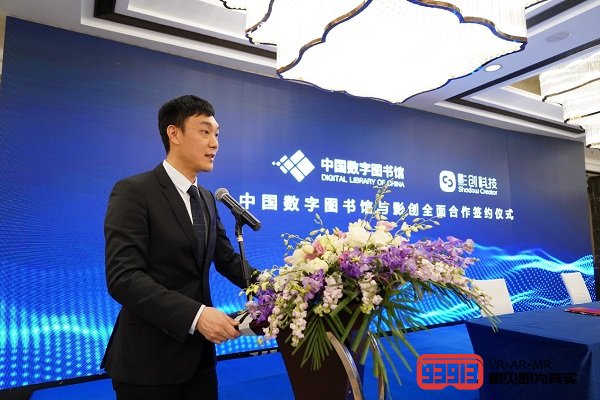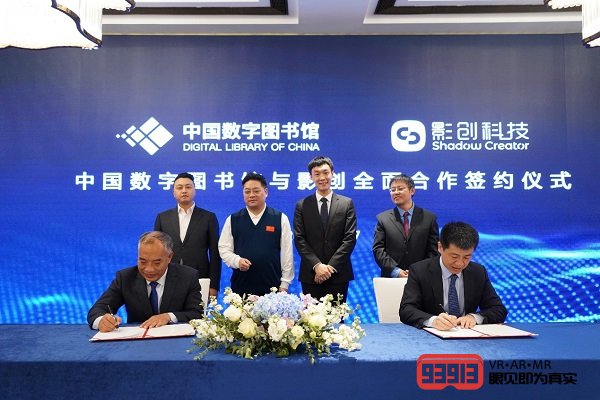 影創(chuàng)科技總裁隋平博士和中國(guó)數(shù)字圖書館副總經(jīng)理李文革代表雙方簽署合作協(xié)議